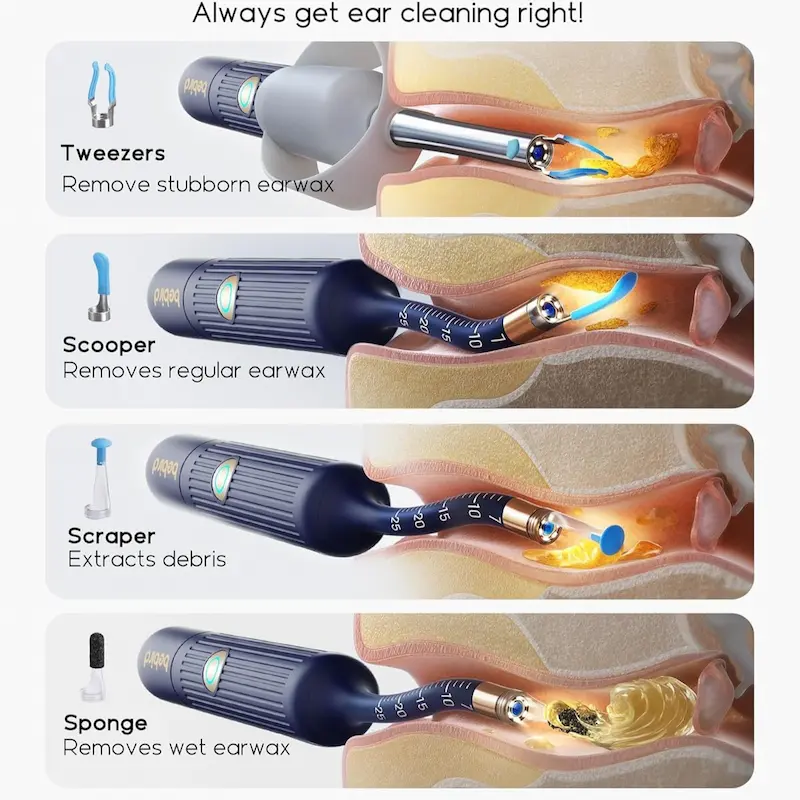 شاهد ما تفعله حرفياً. يجمع Bebird EarSight Plus بين كاميرا عالية الدقة وأدوات مرنة لجعل تنظيف الأذن آمناً وذكيًا ومريحًا. لاسلكي وقابل لإعادة الشحن وممتع بشكل مدهش في الاستخدام!