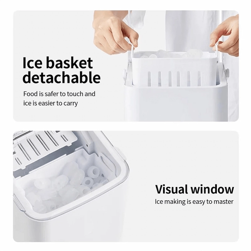 مجهزة بأجهزة استشعار بالأشعة تحت الحمراء وتنبيهات LED لإعلامك عندما يكون مستوى الماء منخفضًا أو سلة الثلج ممتلئة، مع إيقاف التشغيل التلقائي لمزيد من الأمان.تصميم مدمج وأنيق ومتعدد الاستخدامات