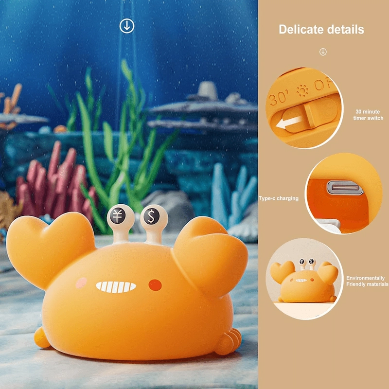 مصباح ليلي من السيليكون على شكل سرطان البحر