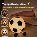 تصميم كرة قدم كرتوني لطيف يضيف لمسة مرحة إلى غرف الأطفال’ والمساحات ذات الطابع الرياضيجسم سيليكون ناعم وطري وآمن ومرن ومريح للمسمادة متينة ومقاومة للصدمات يمكنها تحمل السقوط والضغطضوء LED دافئ يوفر توهجًا لطيفًا وهادئًا لوقت النومضوء مضاد للزرقة صديق للعين يقلل من الوهج ويحمي العينين3 مستويات سطوع قابلة للتعديل لتناسب احتياجات الإضاءة المختلفةتشغيل التحكم باللمس — ما عليك سوى النقر على المصباح لتغيير السطوع أو الأوضاعبطارية مدمجة قابلة لإعادة الشحن (حوالي 1200 مللي أمبير) للاستخدام اللاسلكيدعم شحن USB / Type-C لسهولة إعادة الشحنعمر البطارية حوالي 6–10 ساعات عند الشحن الكاملمؤقت إيقاف تلقائي لمدة 30 دقيقة للمساعدة في توفير الطاقة أثناء وقت النومتصميم محمول وخفيف الوزن لسهولة الاستخدام في أي مكاناستخدام متعدد الأغراض كضوء ليلي، أو مصباح حضانة، أو ضوء مزاجي، أو ديكور غرفةيمكن أن يعمل أيضًا كحامل صغير للهاتف الذكي بتصميم أرجله الممتدة