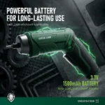 مجموعة رؤوس مغناطيسية 25 مم مكونة من 54 قطعة — مجموعة رؤوس كاملة لكل مهمة 90° مقبض قابل للتعديل — تبديل سهل للزاوية لمرونة الزوايا المتعددة رؤوس مغناطيسية CR-V — رؤوس من الكروم والفاناديوم لضمان المتانة والثبات المغناطيسي القوي التحكم للأمام / للخلف — تبديل الاتجاه بسهولة شحن USB-C — إعادة شحن حديثة ومريحة بطارية 3.7 فولت 1500 مللي أمبير — طاقة موثوقة للاستخدام لفترة طويلة 3 نيوتن متر أقصى عزم دوران — قوة دافعة قوية لمجموعة واسعة من المهام سرعة 250 دورة في الدقيقة بدون تحميل — قيادة لولبية سريعة وفعالة ضوء عمل LED — ضوء مدمج للرؤية في الأماكن المظلمة أو الضيقة ظرف سداسي مقاس 1/4 بوصة مع تحرير سريع — تغييرات سريعة وسهلة للبتات تصميم مدمج ولاسلكي — مثالي لإصلاحات المنزل والأعمال الإلكترونية والمهام اليوميةمناسب لصيانة المنزل ومشاريع DIY — عملي ومتعدد الاستخدامات لمهام متعددة