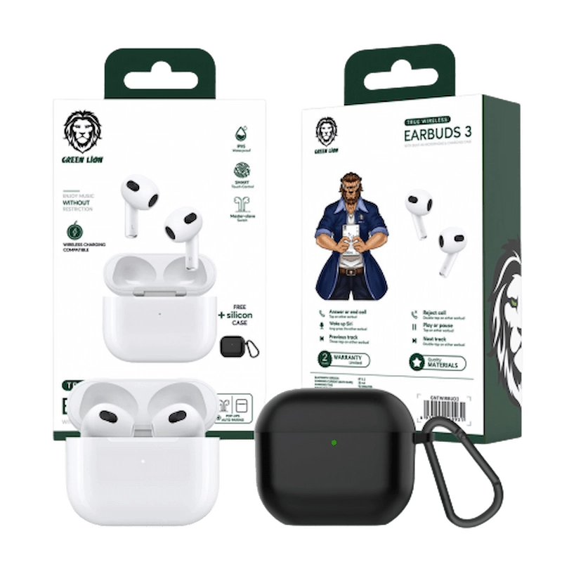 سماعات أذن لاسلكية حقيقية من Green Lion 3 مع علبة سيليكون