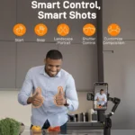 The Hohem iSteady V3 Gimbal features AI tracker that enable smooth,app free face and body tracking for stable shooting.The AI vision sensor can be activated