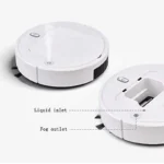 Comes with included accessories: cleaning brush, cleaning cloth, sanitizer filling bottle (for mop function) and USB cable for charging.