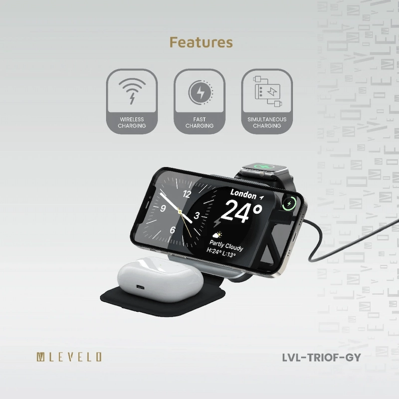 شاحن لاسلكي ثلاثي التدفق من ليفيلو 3 في 1