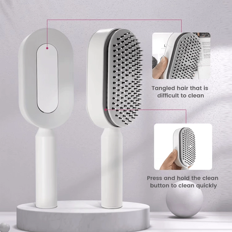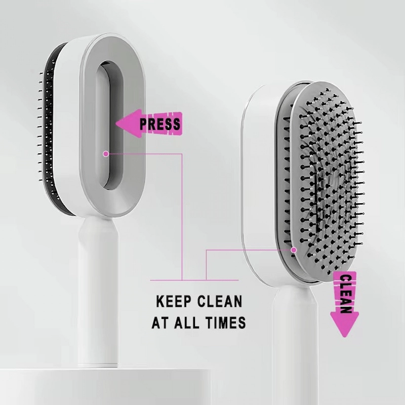 ينظف بسهولة بدفعة واحدة؛ حيث تتراجع الشعيرات، مما يسمح بإزالة الشعر والحطام بسهولة.تضمن الشعيرات ذات الأطراف الناعمة لمسة لطيفة، مما يجعلها مناسبة لجميع أنواع الشعر، بما في ذلك الشعر الناعم والكثيف والمجعد والمستقيم.توفر أطراف الشعيرات المستديرة تدليكًا مهدئًا لفروة الرأس، مما يعزز الدورة الدموية ونمو الشعر الصحيقبضة مريحة وغير قابلة للانزلاق تضمن سهولة الاستخدام، حتى أثناء جلسات التصفيف الطويلةما عليك سوى الضغط على الزر لسحب الشعيرات وتنظيف الفرشاة في ثوانٍ.