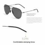 نظارات مصممة على الطراز الكلاسيكي على شكل طيار مصممة من قطعة واحدة من النظارات المصبوبة بدون صامولة تثبيت، ويبدو إطار النظارات بدون إطار عصريًا وأنيقًاعدسة نايلون مستقطبة تقوم بتصفية أشعة UVA وUVB وUVC بنسبة 100% وهي متينة للغاية. مقاومة للصدمات والتشقق ودرجات الحرارة المرتفعةإطارات من الفولاذ المقاوم للصدأ 304 مصممة لتكون رقيقة للغاية وخفيفة الوزن وقوية ولا تتشوه بسهولةأرجل النظارات التي يبلغ سمكها 1 مم فقط، تعطي شعورًا مريحًا أثناء ارتدائها، ولا تضغط على حشو المطاط السيليكوني الذي يساعد على الانزلاق. وغير ضار بالبشرة خفيف الوزن وسهل الحملجاء مع حقيبة جلدية للحفاظ على النظارات آمنة