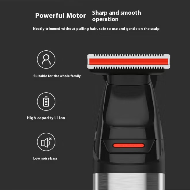 Comes with multiple attachments/accessories: combs (4 combs mentioned), USB charging cable, lubricant oil, and manual.