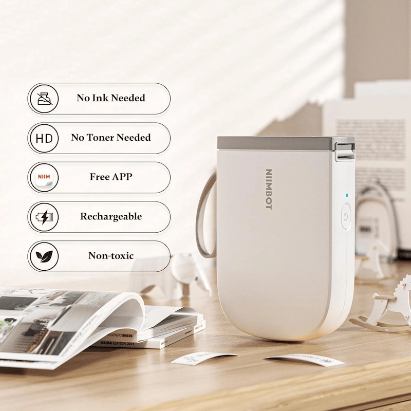 تقنية الطباعة الحرارية (بدون حبر): تطبع الملصقات بدون حبر أو حبر أو شرائط لتشغيل نظيف ومنخفض التكلفة.دقة عالية – 300 نقطة في البوصة: تنتج نصًا حادًا ورموزًا شريطية واضحة وأيقونات مفصلة.سرعة طباعة سريعة (تصل إلى 50–60 مم/ثانية): تتيح إنشاء ملصقات سريعة للاستخدام المنزلي أو المكتبي أو التجاري.اتصال البلوتوث (الطباعة اللاسلكية): يتصل بسهولة بالهواتف الذكية عبر تطبيق NIIMBOT.التحكم في التطبيق (Android وiOS): تخصيص العلامات باستخدام الخطوط والأيقونات ورموز الاستجابة السريعة والصور والقوالب.دعم متعدد اللغات: يطبع أي لغة تدعمها لوحة مفاتيح هاتفك.دعم الاتصال متعدد المستخدمين: يسمح لمستخدمين متعددين بالتصميم والطباعة من جهاز واحد.بطارية قابلة لإعادة الشحن بسعة 1500 مللي أمبير: بطارية مدمجة للاستخدام المحمول واللاسلكي.منفذ شحن USB-C: شحن سهل وسريع باستخدام كابل USB-C الحديث.صغير الحجم وخفيف الوزن (≈199 جرامًا): تصميم بحجم راحة اليد لسهولة النقل. مادة هيكل ABS + PC متينة: بنية قوية للاستخدام اليومي. دعم عرض الملصقات الصغيرة (حتى ~15 مم): مثالي لبطاقات الأسعار وملصقات المنظمات والكابلات والجرار واستخدام الشركات الصغيرة. نظام إعادة لف الملصقات تلقائيًا: يقلل من النفايات ويحسن كفاءة الطباعة. أدوات تصميم الملصقات السهلة: تدعم رموز الاستجابة السريعة والرموز الشريطية والأيقونات والصور والنصوص المخصصة. الملصقات الحرارية (لا حاجة للحبر): تستخدم لفات ملصقات حرارية خاصة للطباعة الفعالة من حيث التكلفة. إنشاء ملصق بنقرة واحدة عبر قوالب التطبيقات مثالي للمنزل والمكتب والمدرسة ومنظمات الأعمال الصغيرة يدعم الباركود ووضع العلامات على المنتجات للاستخدام في البيع بالتجزئة