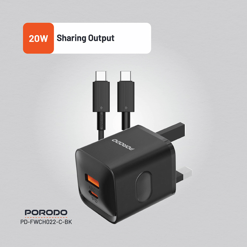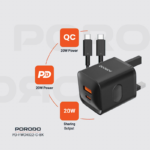 يوفر شاحن الحائط ثنائي المنافذ Porodo Dual Port Wall Charger UK حلاً قوياً وفعالاً للشحن يلبي جميع احتياجاتك في هذا المجال. وهو مزود بعدة خيارات للإخراج، حيث يبلغ إخراج USB-A 9V/2A و12V/1.5A و5V/4A حتى 20W للشحن السريع لعدة أجهزة.