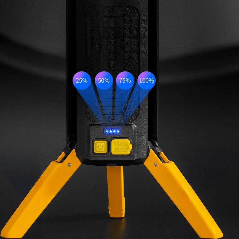 حامل ثلاثي القوائم قابل للطي، يفتح بسرعة، تغيير ثانٍ لضوء العملشعور مريح، سحر التحكم بيد واحدةيتوافق مع التصميم المريح، يمكن استخدامه كبنك طاقة لشحن الهاتفالضوء الرئيسي، الضوء الأبيض قوي-ضعيف-أحمر وأزرق وامض؛ الضوء الخلفي، الضوء الأصفر قوي-ضعيفالرأس يدور 180 درجة، مع خطاف وحامل مخفي ومقبض قابل للفصلمقاوم للماء IP64مع شاشة عرض الطاقة وواجهة Type-C ومخرج USBالمصباح: 1542835 رقعة + 36 أزرق + 36 أحمرلومن: ضوء أبيض قوي، 3200 لومن؛ ضوء أبيض ضعيف، 1200 لومن؛ ضوء أصفر قوي، 100 لومن؛ ضوء أصفر ضعيف، 40 لومنمدة التشغيل: 2-4 ساعاتالبطارية: بطارية: 3 × 18650 (4500 مللي أمبير)