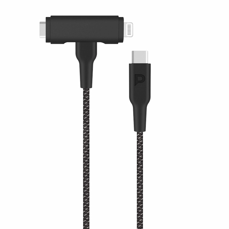 كابل Powerology MFI المضفر من النوع C إلى النوع C وLightning 2 في 1