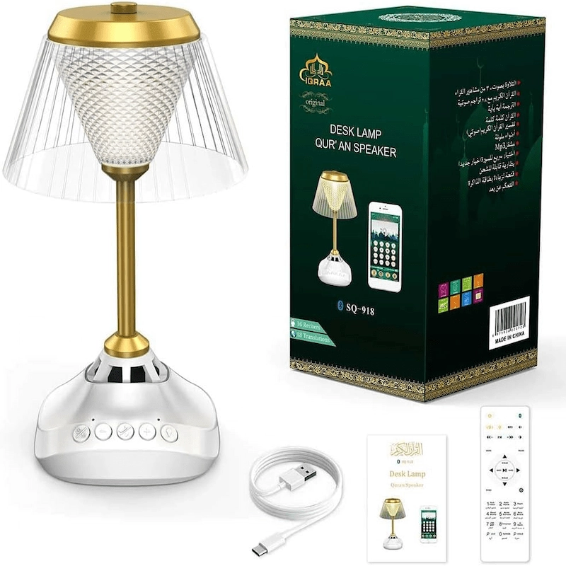 أضف الراحة الروحية والأناقة العصرية إلى مساحتك مع مكبر صوت القرآن SQ918. يجمع هذا الجهاز الأنيق بين مكبر صوت عالي الجودة لتلاوة القرآن الكريم ومشغل صوت بلوتوث ومصباح مكتب LED ملون في تصميم واحد جميل. مع وجود العديد من القراء، وتذكيرات صلاة الأزان، والإضاءة المحيطة المريحة، فإنه يخلق جوًا مثاليًا للتأمل والتعلم واللحظات الهادئة في المنزل.