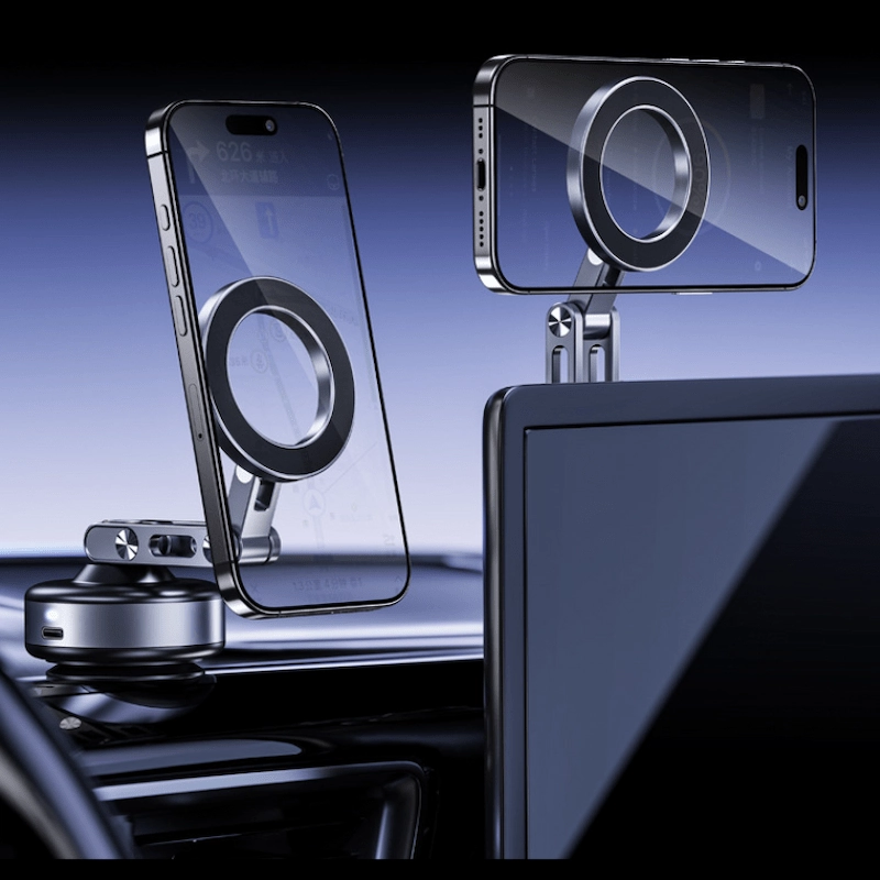 حامل الهاتف المغناطيسي المتميز هو حامل سيارة من المستوى التالي مصمم لتحقيق الاستقرار والحرية التامة. بفضل قوة الشفط الفراغية القوية والقبضة المغناطيسية القوية، فإنه يقفل هاتفك بشكل آمن على لوحات القيادة أو الزجاج الأمامي أو أي سطح أملس. قابل للتعديل بالكامل ومستقر للغاية، فهو يحافظ على شاشتك في مجال الرؤية بشكل مثالي للتنقل والمكالمات والموسيقى— مما يجعل كل رحلة أكثر أمانًا وذكاءً وبدون استخدام اليدين بسهولة.