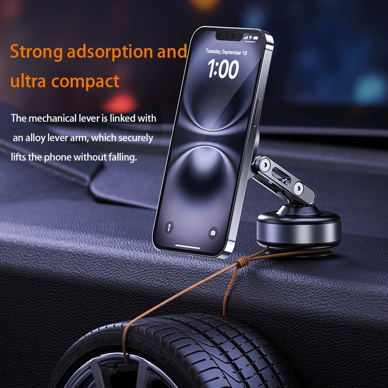 تقنية شفط الهواء الفراغي – تستخدم شفطًا فراغيًا قويًا للتثبيت بقوة على الأسطح الملساء مثل لوحات القيادة والزجاج الأمامي والزجاج والبلاط.قبضة مغناطيسية قوية – مغناطيسات مدمجة عالية القوة تثبت هاتفك في مكانه بشكل آمن، حتى على الطرق الوعرة أو الوعرة.360° الدوران الكامل – يسمح بتعديل الزاوية بالكامل للحصول على رؤية مثالية في الوضع الرأسي أو الأفقي.التركيب متعدد الأسطح – يمكن تركيبه على لوحات معلومات السيارة والزجاج الأمامي والمرايا والمكاتب والأسطح الملساء الأخرى.التوافق العالمي – يعمل مع معظم الهواتف الذكية، بما في ذلك أجهزة iPhone وAndroid.تصميم ثبات قوي – مزيج من الشفط الفراغي + الامتزاز المغناطيسي يحافظ على الهاتف مستقرًا وخاليًا من الاهتزازات أثناء القيادة.تركيب سهل بضغطة واحدة – إعداد سريع مع نظام قفل مفرغ، لا حاجة لأدوات.زاوية رؤية قابلة للتعديل – ذراع مرن وقاعدة دوارة تتيح لك وضع هاتفك بالضبط بالطريقة التي تريدها.مادة بناء متينة – مصنوعة من مادة ABS عالية الجودة وسبائك الألومنيوم للاستخدام طويل الأمد.استخدام صديق للحافظة – يدعم الهواتف ذات الحافظات التي تستخدم حلقة معدنية مغناطيسية (للأجهزة غير المغناطيسية).تصميم مدمج وحديث – مظهر أنيق وبسيط يتناسب تمامًا مع أي تصميم داخلي للسيارة.راحة بدون استخدام اليدين – مثالية للملاحة عبر نظام تحديد المواقع والمكالمات والتحكم في الوسائط أثناء القيادة بأمان.