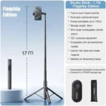 طول قابل للتمديد (حتى 170 سم) – التقط زوايا أوسع ومنظورات أعلى بسهولة.قاعدة حامل ثلاثي القوائم تفتح تلقائيًا – تتحول بسرعة إلى حامل ثلاثي القوائم مستقر للتصوير بدون استخدام اليدين.720° حامل هاتف دوار – دوران مرن للزوايا الرأسية والأفقية والإبداعية.جهاز التحكم عن بعد عبر البلوتوث – التحكم في الغالق لاسلكيًا مع نطاق تشغيل طويل.بطارية ريموت قابلة لإعادة الشحن – بطارية مدمجة للاستخدام المريح والمتكرر.التوافق العالمي للهاتف – يناسب معظم الهواتف الذكية بشكل آمن.تصميم مدمج وقابل للطي – قابل للطي لسهولة التخزين والسفر.تصميم مستقر ومضاد للاهتزاز – مصمم لتقليل الاهتزاز للحصول على صور ومقاطع فيديو أكثر وضوحًا.بناء متين – مصنوع من سبائك الألومنيوم القوية ومواد ABS عالية الجودة.استخدام متعدد الأغراض – مثالي لصور السيلفي والصور الجماعية ومدونات الفيديو والبث المباشر وتصوير السفر.
