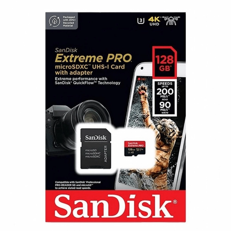 التقط كل لحظة بتفاصيل مذهلة باستخدام بطاقة الذاكرة SanDisk Extreme PRO - 128 جيجابايت. تم تصميمه للسرعة والموثوقية، فهو يوفر أداءً سريعًا للغاية لمقاطع الفيديو بدقة 4K والصور عالية الدقة ونقل الملفات السريع. تتمتع بطاقة الذاكرة هذه بالقوة الكافية للتعامل مع الظروف القاسية والقوة الكافية للحصول على نتائج احترافية، وهي جاهزة لكل مغامرة تقوم بتصويرها.