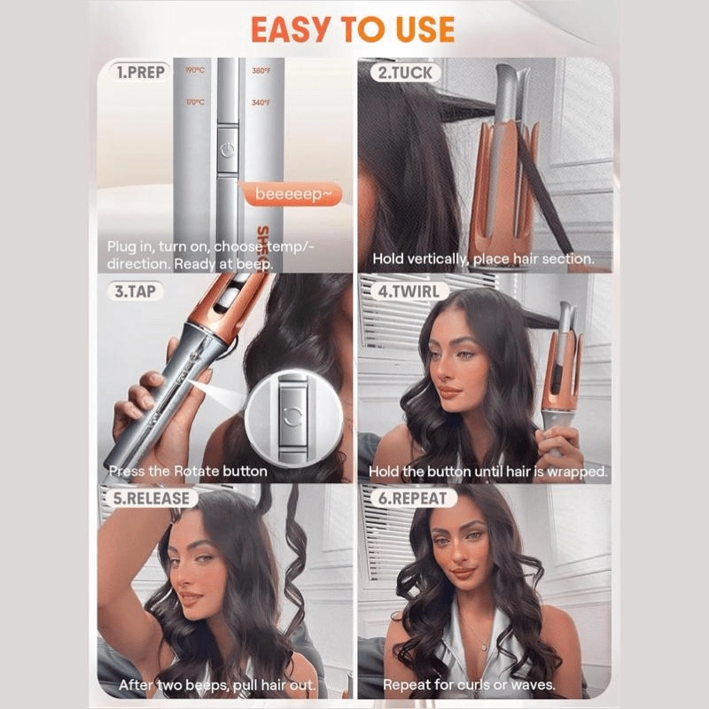 Fast Heating & One-Touch Operation: Achieve beautiful curls in just 60 seconds. Simply place your hair, press the button, and let the curler do the work.