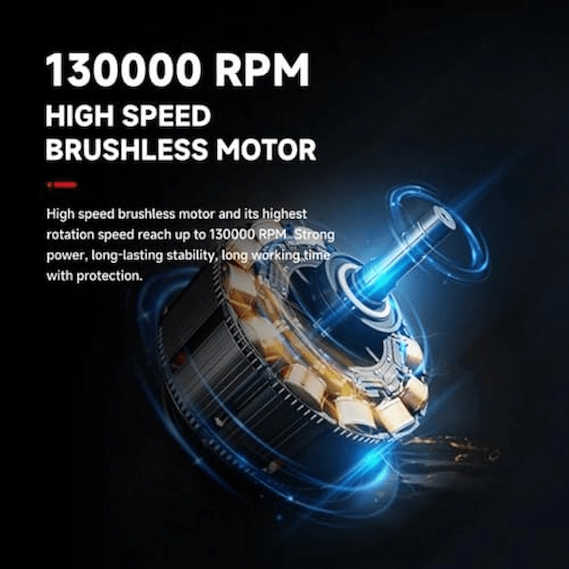 محرك بدون فرش فائق السرعة – مزود بمحرك قوي بدون فرش يصل إلى 130,000 دورة في الدقيقة لأداء تدفق هواء فائق.طاقة رياح قوية (تدفق هواء 52 م/ث) – تنتج رياحًا عالية السرعة تصل سرعتها إلى 52 مترًا في الثانية، وهي مثالية لإزالة الغبار العميق والتنظيف الشاق.3 مستويات سرعة قابلة للتعديل – أوضاع متعددة بما في ذلك تقريبًا. 40.000 / 80.000 / 130.000 دورة في الدقيقة لتتناسب مع احتياجات التنظيف المختلفة.نظام بطارية قابلة لإعادة الشحن – بطاريات مزدوجة مدمجة بسعة 3000 مللي أمبير للاستخدام اللاسلكي والمحمول في أي مكان.الشحن السريع عبر USB Type-C – يدعم الشحن الحديث عبر Type-C لتوفير الطاقة بسرعة وراحة.وقت عمل طويل – يمكن أن يصل إلى 4 ساعات بسرعة منخفضة، مما يجعله مناسبًا لجلسات التنظيف الممتدة.تصميم لاسلكي ومحمول – هيكل محمول خفيف الوزن يجعل من السهل حمله واستخدامه في الداخل أو الخارج.أداة تنظيف متعددة الأغراض – مثالية لتنظيف لوحات مفاتيح الكمبيوتر والإلكترونيات والديكورات الداخلية للسيارات وإزالة الغبار والثلج.تشغيل بزر واحد – نظام تحكم بسيط: اضغط لبدء تدفق الهواء، ثم حرره للتوقف.حماية أمان مدمجة – تتضمن حماية من ارتفاع درجة الحرارة وأنظمة أمان الشحن للاستخدام الموثوق.أداء عالي مستقر – مصمم لتدفق هواء ثابت وطويل الأمد دون انخفاض الأداء.