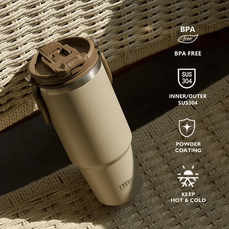 سعة 20 أونصة (591 مل) — الحجم المثالي للاستخدام اليوميهيكل من الفولاذ المقاوم للصدأ عالي الجودة لضمان المتانةعزل مزدوج الجدار يحافظ على المشروبات ساخنة أو باردة لساعاتغطاء قابل للقلب مع ماصّة لسهولة الشرب أثناء التنقلخيار غطاء للشرب التقليدي بدون ماصّةتصميم مقاوم للتسرب لمنع الانسكابمواد خالية من مادة BPA لضمان الشرب الآمنسطح خارجي مقاوم للتعرق — يبقى جافًا ومريحًا عند الإمساك بهقاعدة مقاومة للانزلاق تساعد على منع الانقلابتصميم مريح للإمساك لسهولة الحملقشة قابلة لإعادة الاستخدام مرفقة — بديل صديق للبيئة للقشات التي تستخدم لمرة واحدةأجزاء سهلة التنظيف — أغطية وقشات قابلة للإزالةتناسب معظم حاملات الأكواب القياسيةتشطيب أنيق وعصريمثالية للقهوة الساخنة والمشروبات المثلجة والماء والعصائر وغيرهامثالية للسفر والتنقل والعمل والنادي الرياضي أو الاستخدام في الهواء الطلق