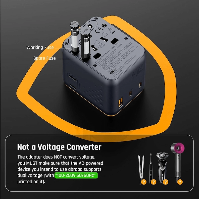 يعد محول Voltme Vito Go EzTravel 20W الرفيق المثالي للسفر لشحن سريع وموثوق في أي مكان في العالم. بفضل تزويد الطاقة USB-C بقدرة 20 وات ودعم القابس العالمي، فإنه يحافظ على شحن أجهزتك في أكثر من 200 دولة. صغير الحجم وخفيف الوزن ومزود بميزات أمان ذكية، إنه الحل الشامل المثالي للشحن السهل في المنزل أو أثناء التنقل.