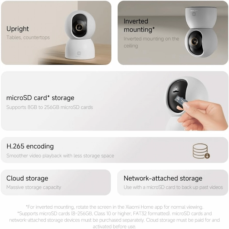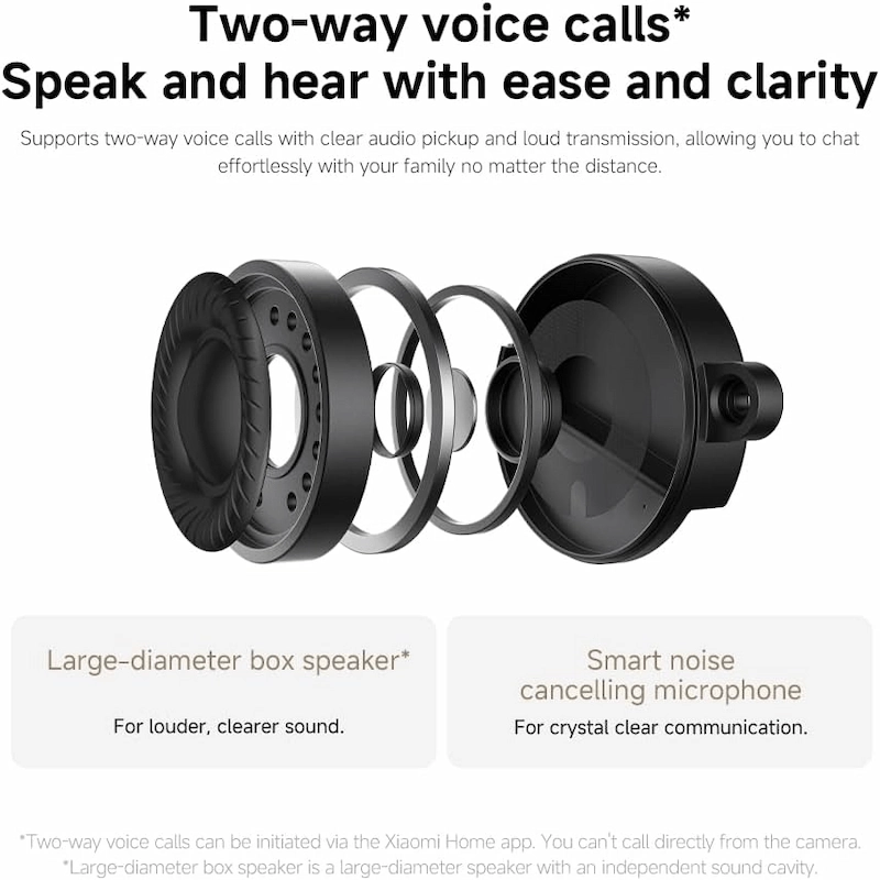 دقة 4K Ultra HD (8MP – 3840×2160) للحصول على فيديو واضح للغاية ومفصل للغاية فتحة عدسة كبيرة f/1.6 مع عدسة 6P للحصول على جودة صورة أكثر سطوعًا ودقة دعم HDR للصور المتوازنة في كل من الظروف الساطعة والمظلمة رؤية ليلية ملونة بالكامل للرؤية في البيئات ذات الإضاءة المنخفضة الرؤية الليلية بالأشعة تحت الحمراء (940 نانومتر، حتى 10 أمتار) بدون توهج أحمر مرئي الكشف عن البشر وتتبعهم باستخدام الذكاء الاصطناعي لمراقبة الحركة بدقةاكتشاف الحيوانات الأليفة وتتبعها بالذكاء الاصطناعي (القطط والكلاب) لمراقبة أكثر ذكاءً اكتشاف بكاء الطفل من خلال التنبيهات الفورية اكتشاف الضوضاء العالية للتنبيهات الصوتية غير العادية إشعارات ذكية في الوقت الفعلي يتم إرسالها مباشرة إلى هاتفك محرك مزدوج التحريك والإمالة (360° أفقيًا، 109° رأسيًا) لتغطية الغرفة بالكامل التتبع التلقائي للأشخاص والأشياء المتحركة أوضاع مراقبة متعددة (مراقبة بانورامية، مراقبة بنقطة ثابتة، مراقبة محددة الوقت) واي فاي ثنائي النطاق 6 (2.4 جيجاهرتز و5 جيجاهرتز) لاتصال أسرع وأكثر استقرارًا أداء أسرع بنسبة تصل إلى 60% مقارنة بشبكة Wi-Fi 4 يعمل مع Amazon Alexa وGoogle Assistant للتحكم الصوتي اتصال صوتي ثنائي الاتجاه للمحادثات في الوقت الفعلي مكبر صوت كبير مدمج وميكروفون لإلغاء الضوضاء للحصول على صوت واضححماية العدسات المادية (وضع الخصوصية) لحماية الخصوصية الكاملة شريحة أمان MJA1 مع حماية بيانات من الدرجة المالية معالجة الذكاء الاصطناعي المحلي للحصول على أداء أسرع وأكثر أمانًا نقل البيانات المشفرة لحماية خصوصية المستخدم ترميز الفيديو H.265 للتخزين الفعال والتشغيل السلس يدعم بطاقات microSD (8 جيجابايت – 256 جيجابايت) والتخزين السحابي وNAS 1 شريحة TOPS AI (1 تريليون عملية/ثانية) للمعالجة السريعة والدقيقة معالجة الصور المتقدمة (ISP) لتقليل التشوه وتحسين الوضوح يدعم التركيب المستقيم والمقلوب (السقف) إعداد سهل من 3 خطوات عبر تطبيق Xiaomi Home دعم البلوتوث والتوافق الواسع (Android وiOS) يعمل في نطاق واسع من درجات الحرارة (-10°C إلى 40°C) مثالي لأمن المنزل ومراقبة الأطفال ومراقبة الحيوانات الأليفة