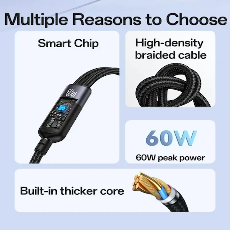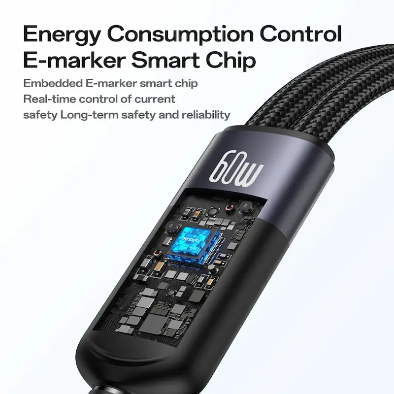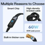يدعم الشحن السريع حتى 60 واط لتزويد أجهزتك بالطاقة بكفاءة.توافق عالميطول 1.2 مترتصميم متين ومرن