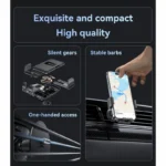 A universal 360° rotating phone holder that fits all car air vent types. Features a strong grip, adjustable viewing angles, and one-button release for easy, hands-free use while driving.