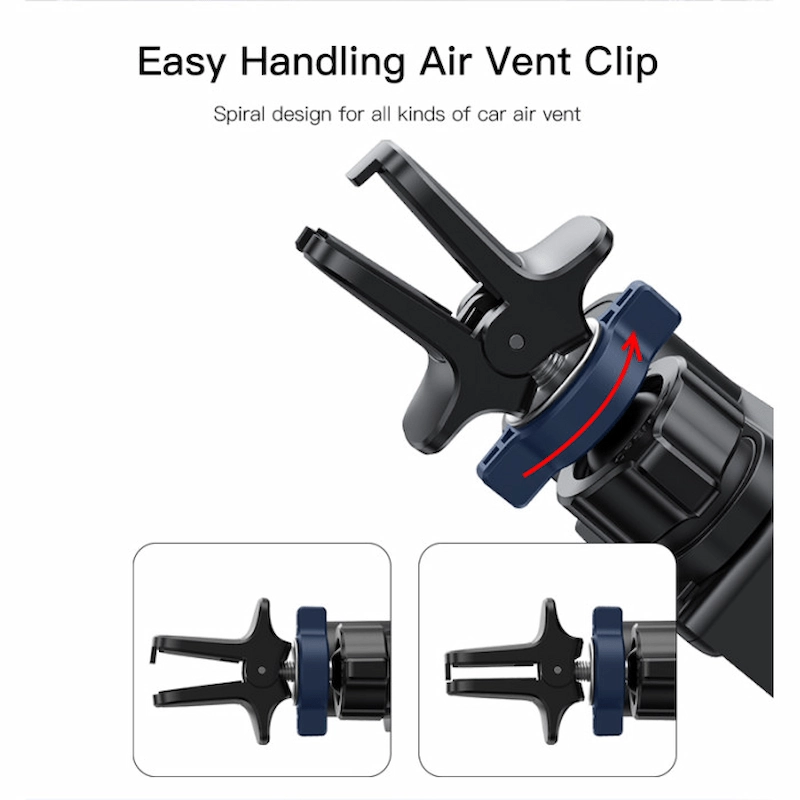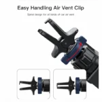 ذراع المشبك الإلكتروني الأوتوماتيكي — آلية كهربائية ذكية تفتح وتغلق المشبك تلقائيًا لتثبيت هاتفك بشكل آمن.التحكم بزر واحد — يسمح لك الزر الموجود في الخلف بفتح المشبك أو تحريره بسهولة بضغطة واحدة.تصميم حامل فتحة التهوية — يتم تثبيته مباشرة على منفذ فتحة التهوية في السيارة لوضعه بشكل مريح أثناء القيادة.توصيل الطاقة USB-C — منفذ من النوع C يستخدم لتشغيل أو إعادة شحن آلية المشبك الإلكترونية.توفر البطارية المدمجة القابلة لإعادة الشحن (≈200 مللي أمبير) — وقت استعداد طويل ويمكنها العمل لعدة أشهر بشحنة كاملة واحدة.360° مفصل كروي دوار — يسمح بزوايا عرض مرنة في الوضع الرأسي أو الأفقي للتنقل أو المكالمات.عرض المشبك القابل للتعديل — أذرع قابلة للتمديد تناسب أحجام الهواتف الذكية المختلفة بشكل مريح.التوافق الواسع مع الهاتف — يدعم معظم الهواتف الذكية الموجودة في السوق، عادةً الأجهزة مقاس 4 بوصات – 6.7 بوصة.مواد عالية الجودة — مصنوعة من مادة ABS المتينة وسبائك الألومنيوم للقوة والاستخدام طويل الأمد.تصميم مضاد للانزلاق والحماية من الخدوش — وسادات داخلية ناعمة تمنع الهاتف من الانزلاق أو الخدش.قبضة مستقرة أثناء القيادة — مصممة للحفاظ على الهاتف آمنًا حتى على الطرق الوعرة.تصميم مدمج وخفيف الوزن — لا يسد فتحة التهوية ويحافظ على منطقة لوحة القيادة أنيقة.دعم القيادة بدون استخدام اليدين — مثالي لاستخدام نظام الملاحة GPS والمكالمات والموسيقى بأمان أثناء القيادة.