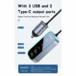 The Yesido Y53 is a powerful 5-port car charger featuring 3 USB-A and 2 USB-C ports with 97W total output. It supports fast charging, has a 1.5m extension cable for rear-seat access, and includes an LED display to monitor your car’s voltage in real time. Ideal for charging multiple devices on the go.