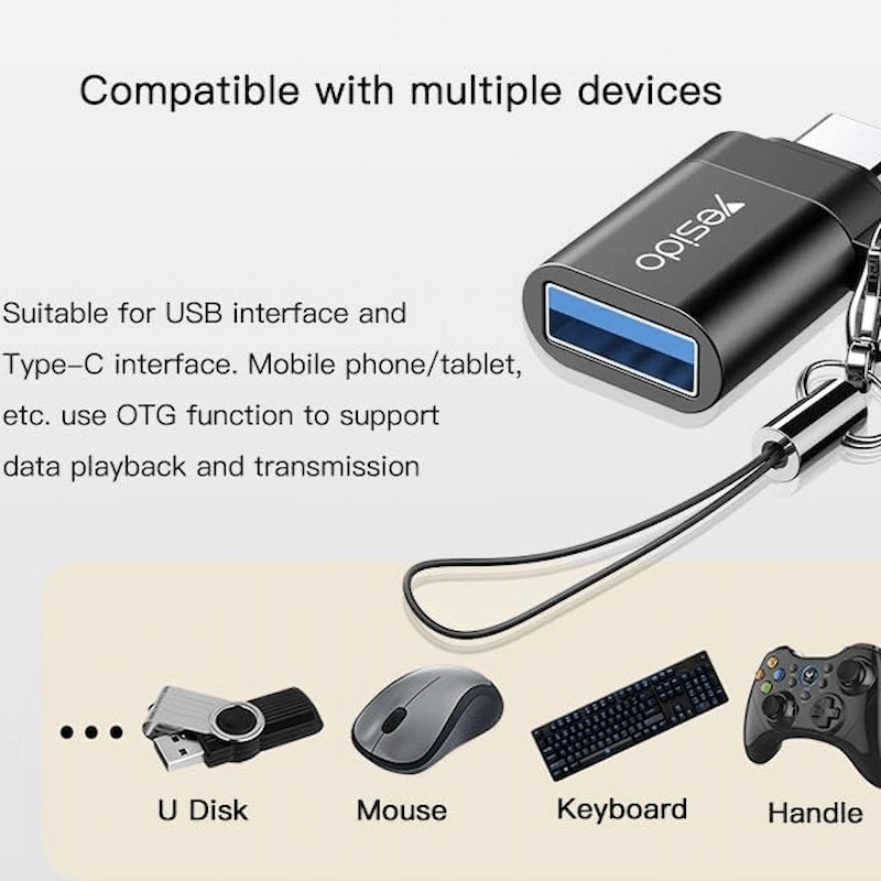 يعد محول Yesido Type-C إلى USB-A OTG GS06 أداة صغيرة ولكنها قوية تعمل على توسيع ما يمكن لجهازك القيام به. بفضل سهولة التوصيل والتشغيل البسيطة، فإنه يتيح لك توصيل محركات أقراص USB ولوحات المفاتيح وبشكل مباشر بجهاز Type-C الخاص بك في ثوانٍ. صغير الحجم ومتين وجاهز دائمًا— إنه ملحق الجيب المثالي للعمل والسفر والاستخدام اليومي.