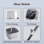 Labor-Saving, Self-Standing Design – The mop can stand upright on its own, and the telescopic handle adjusts to different heights for comfortable use and easy storage.