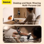 The Baseus Neck Mount lets you enjoy your favorite content without lifting a finger. Whether worn around your neck or set up as a desk stand, its flexible design, 360° rotation, and soft silicone padding make it the perfect companion for binge-watching, video calls, or scrolling in total comfort. Your screen, your way—no hands needed!