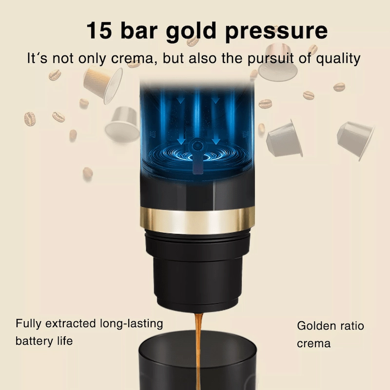 Mini Portable Espresso Design – Compact and lightweight build, perfect for travel, camping, car use, or office coffee.