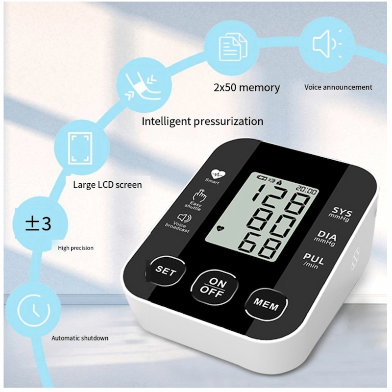 Monitor your health with ease using the Smart Holter Digital Blood Pressure Monitor. Designed for accuracy and simplicity, it features a large LCD display, one-touch operation, and adjustable arm cuff