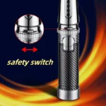 Elevate your outdoor adventures with the Flame Lighter. Crafted from durable zinc alloy, this sleek lighter delivers a powerful blue flame, ideal for grilling, welding, or lighting cigars. Its ergonomic design ensures a comfortable grip, while the safety lock prevents accidental ignition. Refillable and windproof, it’s your reliable companion for every outdoor activity.