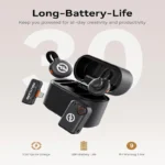 Enjoy 9 hours of working time per transmitter/receiver (noise cancellation off) with a quick 1.5-hour recharge. The charging case adds 2.5 full charges, delivering up to 30 hours of total battery life.