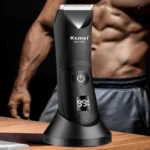 Kemei 1840 portable shaver for sensitive areas, 600mAh battery with type-c charger. One charge gives up to 90 minutes of use, With built-in screen & light. IPX7 waterproof