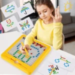 A fun, mess-free doodle board with a magnetic pen and beads. Great for toddlers and kids to create colorful designs, develop fine motor skills, and enjoy screen-free play at home or on the go