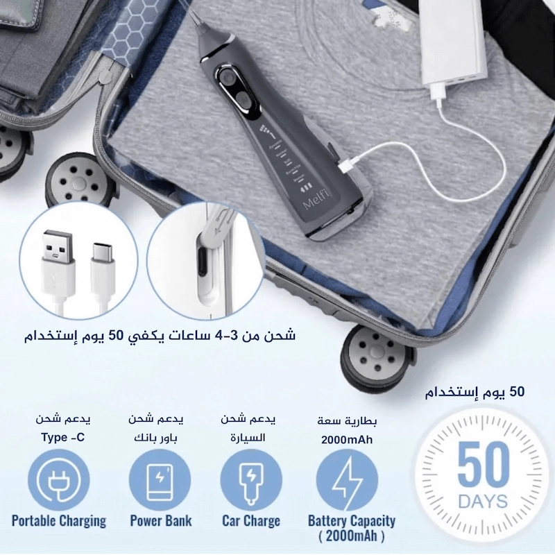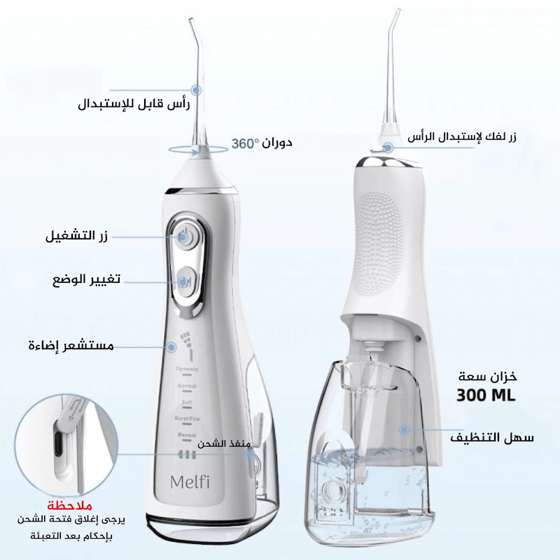 The Melfi Water Flosser brings a fresh, powerful clean that feels like a mini spa for your smile. Using targeted water pressure, it reaches deep between teeth and along the gumline—where brushing can’t.Sleek, easy to use, and surprisingly effective, it turns your daily routine into a refreshing experience that leaves your mouth feeling cleaner, healthier, and confidently bright.