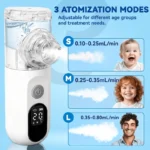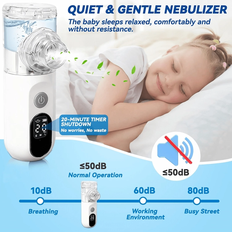 Breathe easier anytime, anywhere with this sleek Portable Nebulizer Machine, designed for both kids and adults. Featuring a clear LCD display, 3 adjustable mist levels, and ultra-quiet operation, it delivers fast, effective relief without the noise or hassle