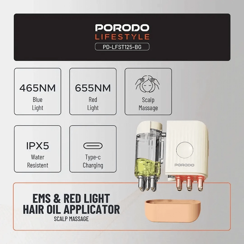 Combines red light therapy with scalp massage for enhanced hair care (465nm Blue Light, 655 Red Light )