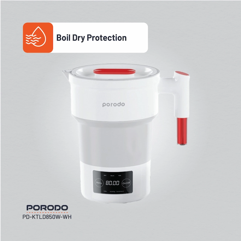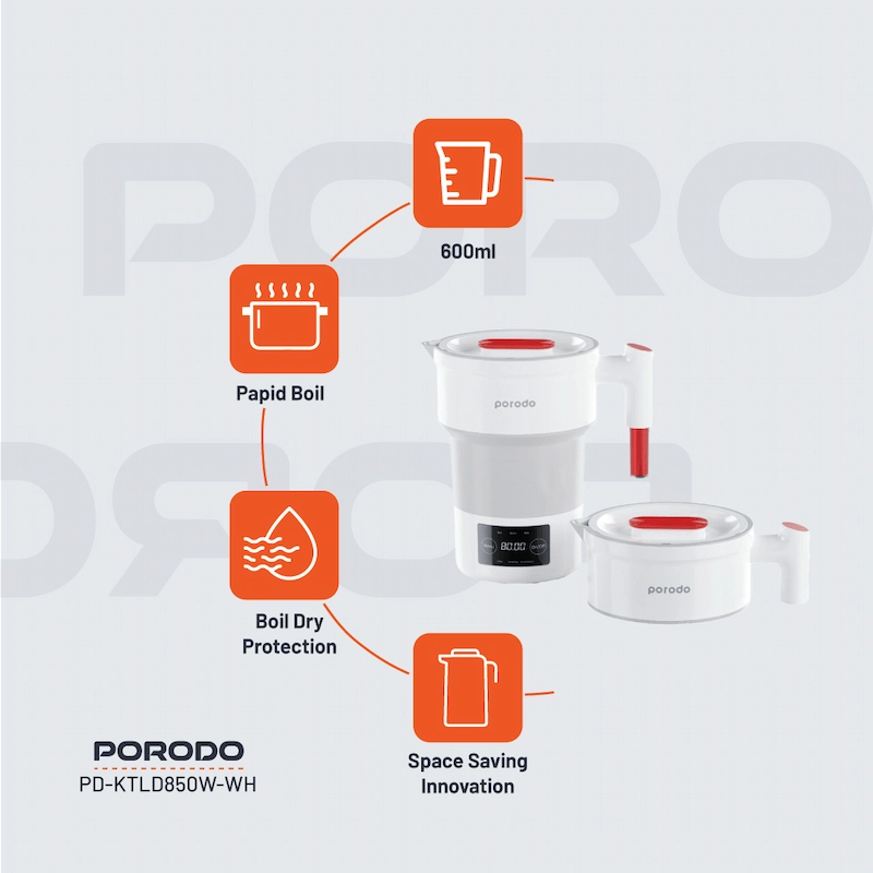 Porodo Folding Electric Kettle is the perfect travel companion for hot drinks anywhere you go. With its smart foldable design, it easily fits into your bag while still delivering fast, powerful boiling. Lightweight, compact, and safe to use, it’s ideal for trips, camping, dorm rooms, or small kitchens — so you can enjoy a fresh cup of tea or coffee anytime, anywhere.