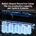 Ultra-Fast Ice Production : Cranks out 9 bullet-shaped ice cubes in just 6 – 10 minutes per cycle.