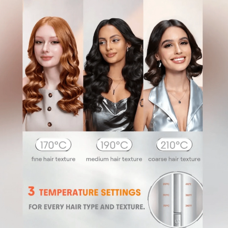 Three Temperature Settings: Adjustable heat settings (340°F- 410°F) cater to various hair types, from fine to thick