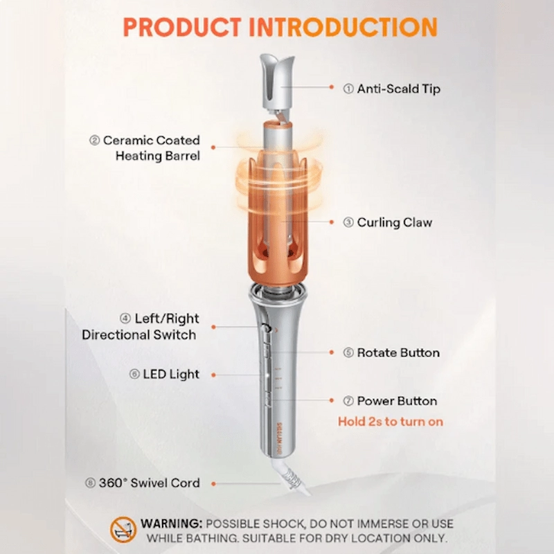 2-Way Rotation: Offers both left and right curling directions, allowing for versatile styling options.