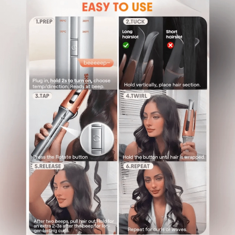 Fast Heating & One-Touch Operation: Achieve beautiful curls in just 60 seconds. Simply place your hair, press the button, and let the curler do the work.
