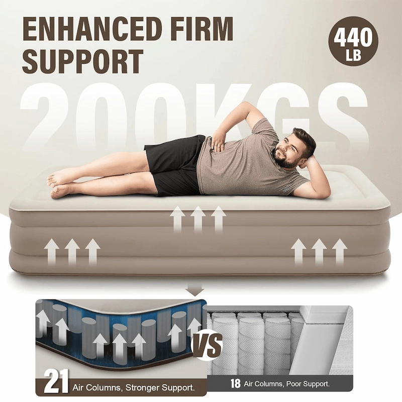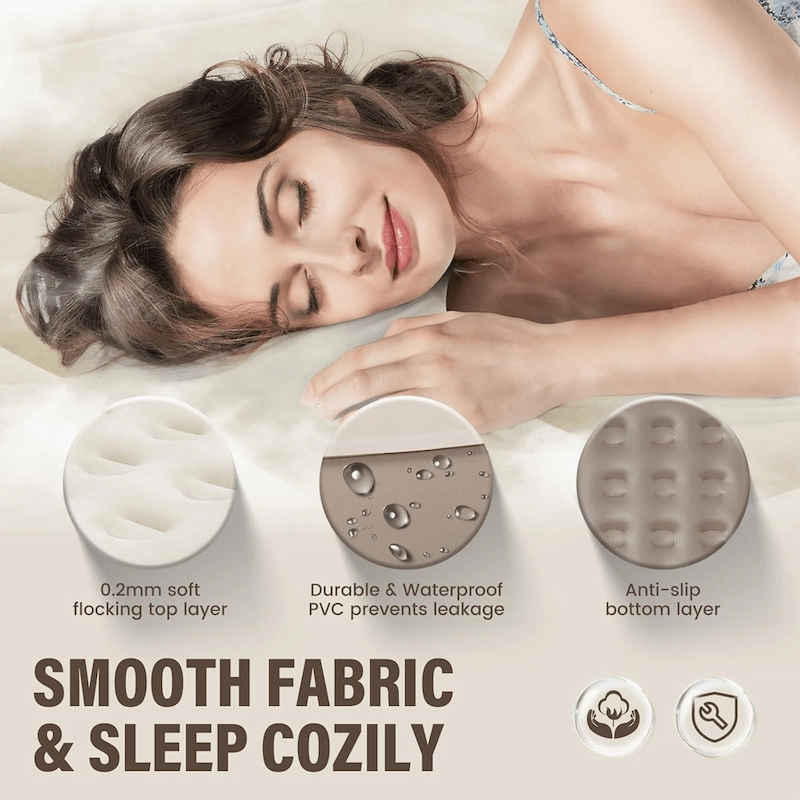 Comfortable inflatable sleeping surface designed for home, travel, and outdoor use