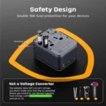 World Coverage – Compatible with Type A (US), C (EU), G (UK), and I (AU) plugs, usable in over 200 countries
