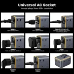 7-in-1 Charging Ports – 3 USB-C Power Delivery ports + 2 USB-A ports + 2 AC outlets for multiple devices